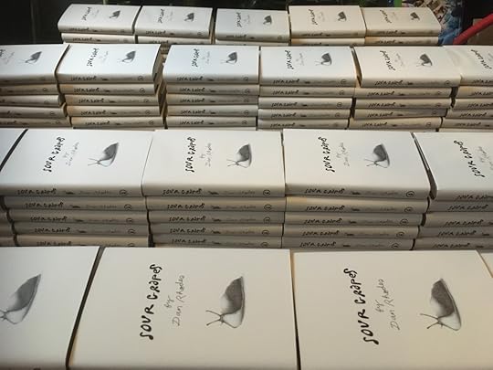 Sour Grapes has been out for a few weeks now, and we’ve been having a blast with it. I didn’t think it would find a publisher (if you’ve read it you’ll understand why) and expected to release it from the kitchen table – I couldn’t afford to have it bound, so the plan was to print 200 copies on loose leaves, just to get it out there. But things have turned out a lot rosier than I’d anticipated. Not only have Eye/Lightning taken it on, but they’ve also produced a really handsome edition. As a reader I’m normally in the wait-for-the-paperback camp, and I expect you are too, but it really is worth making an exception for this. The book looks so great, with Andrea Joseph’s illustrations all over it, that it’s worth getting a copy even if you have no intention of reading it. It’s an objet d’art, people.
