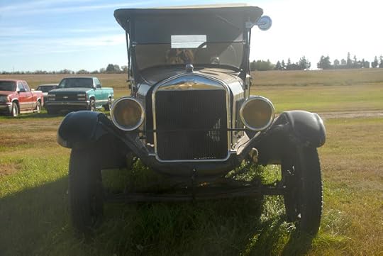From Alex Emond:"This car was sitting in a yard in Neville, Saskatchewan, just south of Speedy Creek. The owner and a few of his friends were on hand so I asked if I could do a sketch and take some pictures, No problem . He said that, at 6' 3" he can barely fit in it to drive . A hundred years ago the average height for a man was more like 5'8". I sat in the shade and did a quick rendering . Beautiful fall weather . Cheers, Alex"AL:Not sure if it is a model T or not. 1927 was the last year of Model T production. The "t" we know and admire here in Brooklin Maine is a 1917 Model T and looks much spindlier and frailer than this unit. We posted on the naturalist John Burroughs' Model T, a gift from Henry himself. The there's Senator Eugene McCarthy's Model T poem.