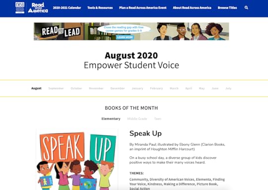 SPEAK UP has been chosen as August’s Book of the Month for Empowering Student Voice! Educators and parents can find teaching materials to go along with this book here or at the NEA’s website. Curriculum topics include: Community, Diversity of American Voices, Elementary, Finding Your Voice, Kindness, Making a Difference, Picture Book, Social Action.