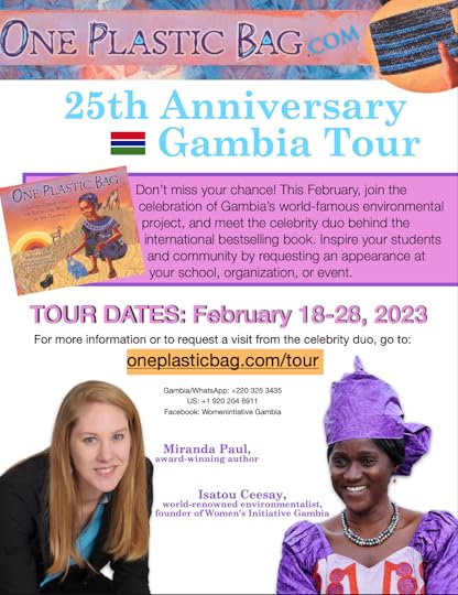 This February, American author Miranda Paul and Gambian activist Isatou Ceesay will join forces to inspire and empower young people across the Gambia, West Africa, in a special anniversary tour February 16-28, 2023. They will be celebrating 25 years since Isatou began picking up plastic trash and transforming it into beautiful recycled items, and forming the women’s recycling group.