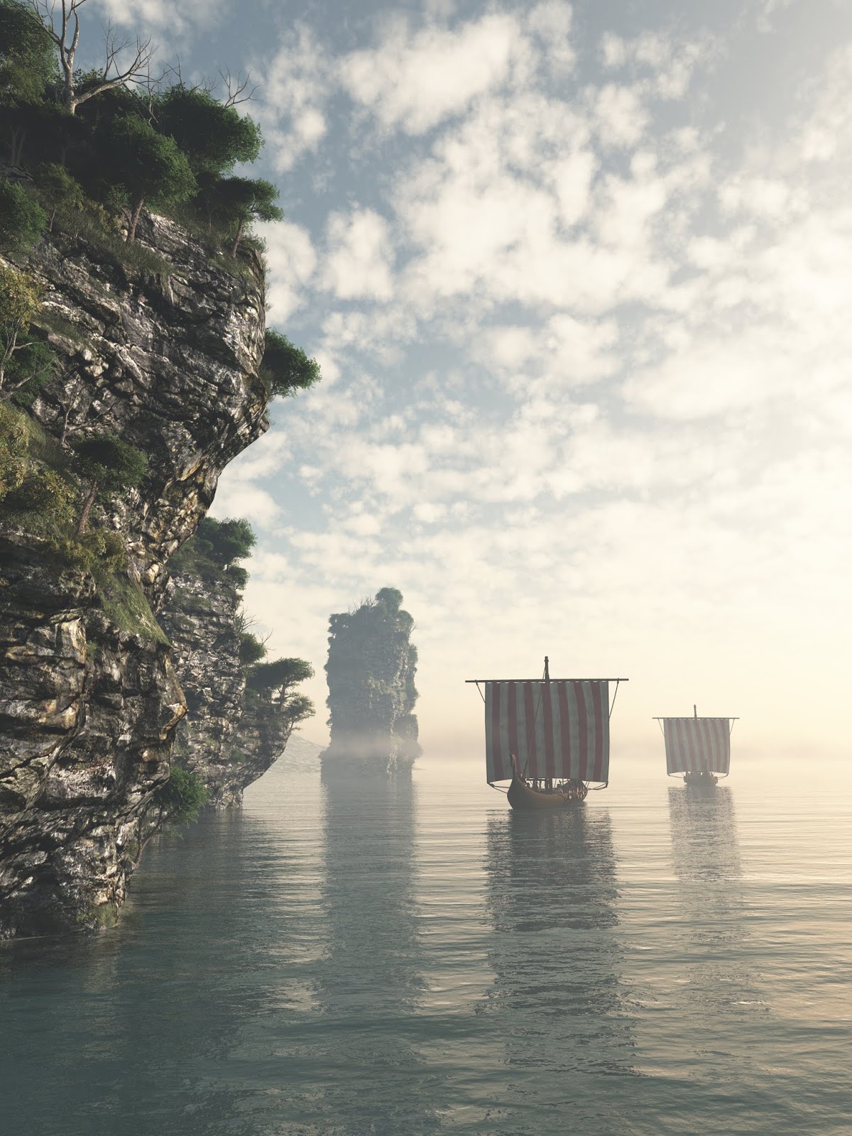 But aren't you glad I broke down and actually paid to get the picture--by a professional? Kudos to EC Stever who put us onto Viking Longships In Unknown Waters © Sylphe_7, istock photo ID # 506912511.