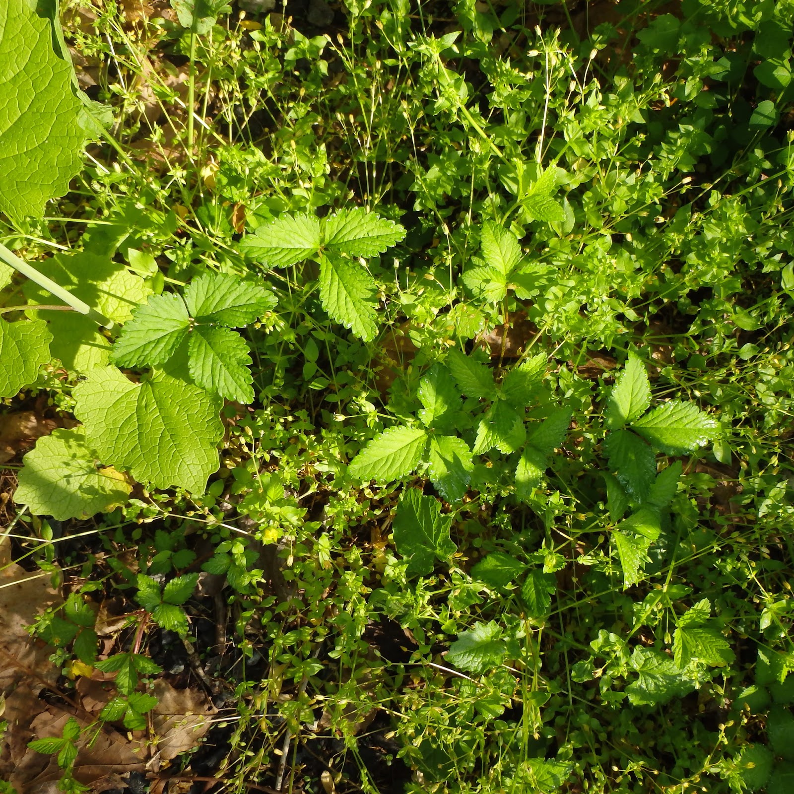 wild strawberries, not in bloom.you can eat the flowers. but why would you when you can wait and have berries?