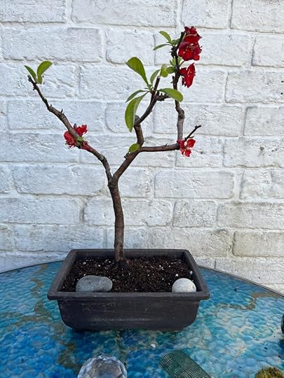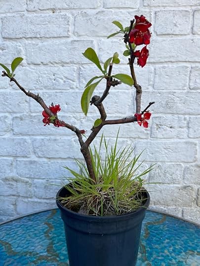 For some reason, I chose the Japanese Quince. The one had been unceremoniously dumped in a large flower pot and was currently sharing it with a huge clump of grass.
