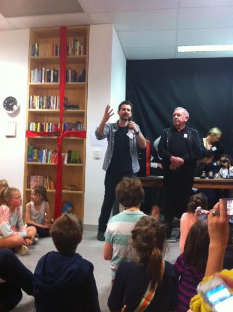 Co-founder, Jess Tran, cut the ribbon around the bookcase to declare the building officially open, only to discover it swung open to hide a secret room - and access to the bank vaults next door! They left the money in the vaults for now, but handed out lucky-dip books to the kids instead...