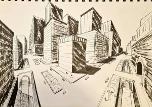 I’ve finished my last 2 point perspective exercise, and by “finished” we mean “I’m exhausted and grumpy and hate it so I’m done and besides the point was the PERSPECTIVE not shading and I did that so :p” and also it turns out that neither of the courses I’m following really expect you to do any 3 point perspective, so honestly, I’m just not gonna. Not now.