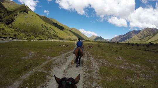 There’s a huge, four-year-old Clydesdale named Ben who plies his trade on a ridiculously scenic horseback riding station outside Queenstown, New Zealand. Ben loves to eat…anything. Ben also enjoys stopping for drinks at stream crossings and is quite perturbed by flies buzzing around his head (but who isn’t?). His best friend—or mate, as they say in these parts—is a former racehorse named George. I know all of this because I spent two hours aboard Ben on the first horseback ride of my life. Can you even be “aboard” a horse? Doesn’t matter.