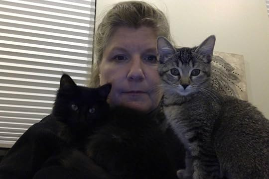 I got into fostering by adopting a couple of cats from a rescue group. While researching pet adoption (I am a writer; I research everything I do), I read that black cats are hard to place (and therefore have a very high rate of euthanasia), and also that bonded pairs of cats (and dogs) are harder to place than solo animals. I was perfectly willing to adopt both/either kind of cat, and Cat Adoption Team (C.A.T.) had a bonded pair of black cats available, estimated age 8 months old, probably brothers. I named them Hector & Achilles; I am a Bronze Age geek and a fan of Homer’s Iliad. They were two heroic little fellows who had survived on their own, as far as we know, until they were about 5 months old, when they turned up together at a kill shelter during one of the harshest winters on record here. I adopted them a few months after C.A.T. rescued them. Several years later, they are still inseparable.