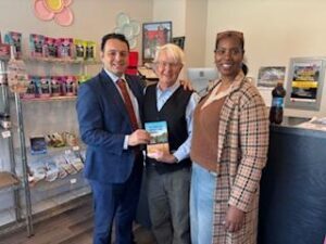 My new book “The Road to a Hunger-Free America — Selected Writings of Mark Winne” is available at a 20% discount from bloomsbury.com/9798765132340 with discount code GLRBD8. L to R: Paterson Mayor Andre Sayegh, Mark Winne, and Shana Mandradge.