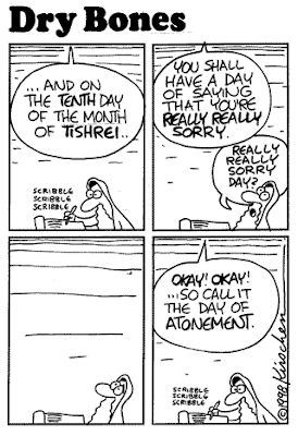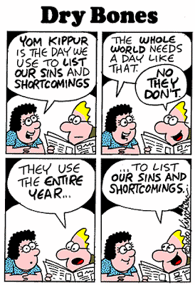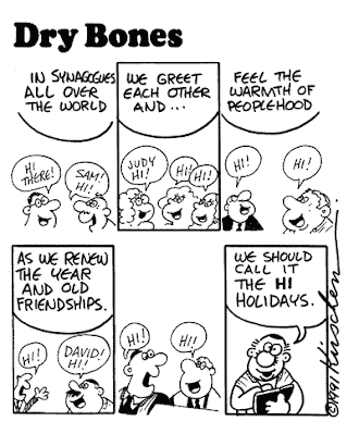 Shana Tova, and Gmar Hatima Tova. Yom Kippur starts on Wednesday night. Dry Bones Golden Oldies in the fond memory of Yaakov Kirschen (Dry Bones). Brought to you by Sali, the LSW. Here is a cartoon for the High Holidays from 1991. I thought that in these very heavy times, we could all use a bit of lite comic relief.