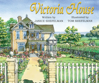JANICE:  Researching, writing, and illustrating books make connections with people who would never connect otherwise. Our first picture book, Victoria House, is the story of a once elegant Victorian farmhouse that is eventually deserted and falls into disrepair. The cover shows her in the old days when she was lived in and loved.