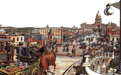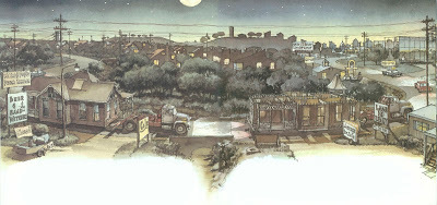 Also this illustration from A Peddler's Dream that shows young Solomon Joseph Azar, a peddler from Lebanon, arriving in Austin, Texas, where he will make his dream of having a store of his own come true and make Congress Avenue his world.