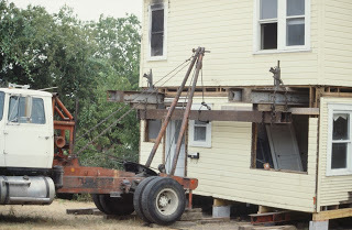 While researching how a house is moved, we met Big Earl and his family who were house movers. We watched them take apart and move a house, the lower floor and upper floor each on a separate truck. When our book was published, they all came to our book signing at Toad Hall.