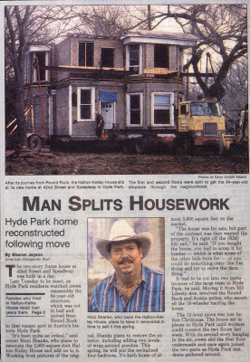 Finally, one day we were driving through an inner city neighborhood in Austin and saw an old house that had just been planted in a vacant lot. Of course, we stopped and talked with the owner and gave him a copy of Victoria House.