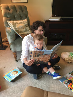 Here his grandmother is reading it to him as they listen to a CD of "The Four Seasons." Every day he requests Vivaldi, both the book and the music. I love his intent expression and his little fingers sticking out from under the book. This child could grow up to be a musician, a composer, the president, or anything else he wants to be! So much depends on what he is exposed to.