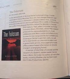The FulcrumMy second novel The Fulcrum continues to enjoy favourable coverage. Most recently in an excellent magazine, In the Hills, published to celebrate Dufferin and Caledon counties, north of Toronto published their winter list of novels. I was delighted to see the inclusion of The Fulcrum.