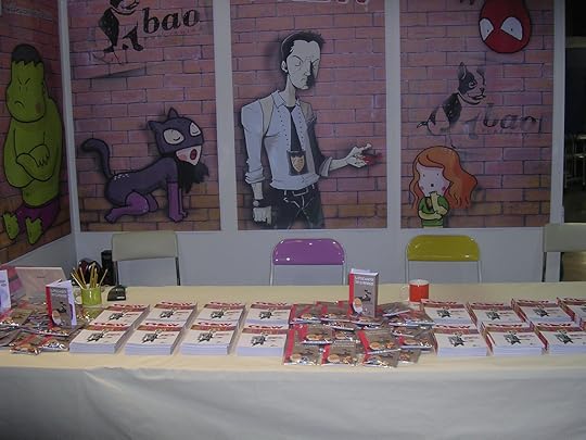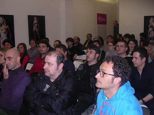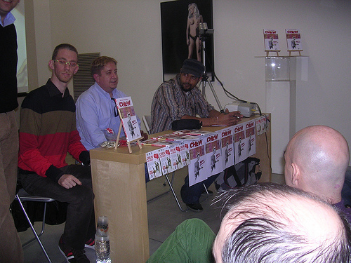 The final stop of CHEW tour Italia saw Layman and Rob heading to Treviso for a presentation and Q&A at a packed house at the Spago Paraggi art gallery, moderated and translated by Michele Foschini of BAO Publishing (publishers of CHEW: MENU DEGUSTAZIONE*). In the background, is the gallery's current exhibition, photographs of deceased 80s Italian porn star Moana Pozzi.
