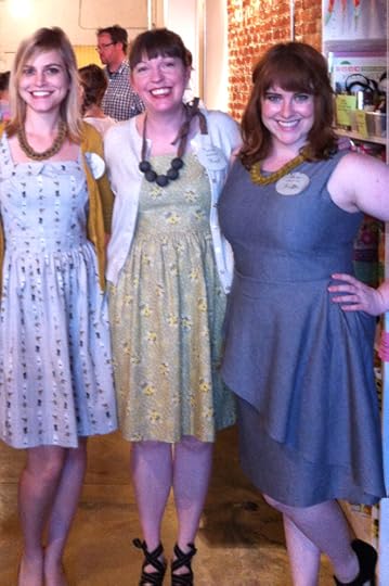 I was hired at nearly the same time as my amazing friend Haley Glenn, and a little while later, my friend Devon Iott, whom I worked with at the Urban Craft Center, was brought on too, right when the shop was expanding into its big new home in Atwater Village. The three of us learned, grew, became better teachers, better people, great friends, and threw some mighty fine parties (like this book party and this pattern release party for Colette, a prom birthday party for Oona, a retro picnic book release party for Gertie, and this book release party for one of my books). Haley has since left us for Portland and is now the Managing Editor at Seamwork Magazine and has become a key player at Colette Patterns. Devon now lives in Nashville, and works for VSP (Viking Singer Pfaff), is in charge of The Sewing Party, and teaches at Anna Maria Horner's shop Craft South. Though I miss both of them everyday, I am so proud of both of these amazing ladies and all they are doing.