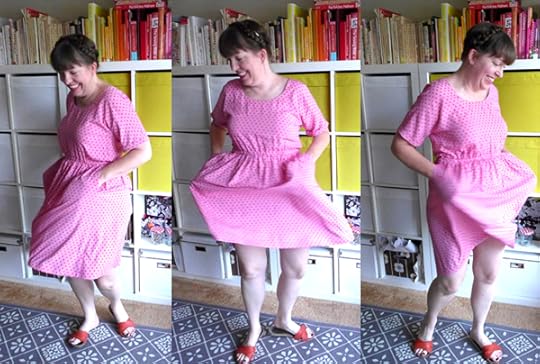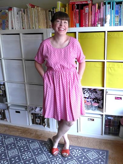 In the end, I love this dress. I'm thinking of this as a wearable muslin since I didn't make a real muslin, but it's very wearable indeed. Changes I will make next time in addition to making the small and shortening the length a little bit more will be to just reshape the sleeves to be a proper tank, and raising the back a bit too as the scoop is a little too low for me. But this is just personal taste and nothing about the pattern at all. Next version I will try it without the pockets and in a less grannie fabric, as I can see this being a really great staple for hot summer days, or with a cardigan in the fall and winter, and made up in solid black or navy could be very chic and classic.