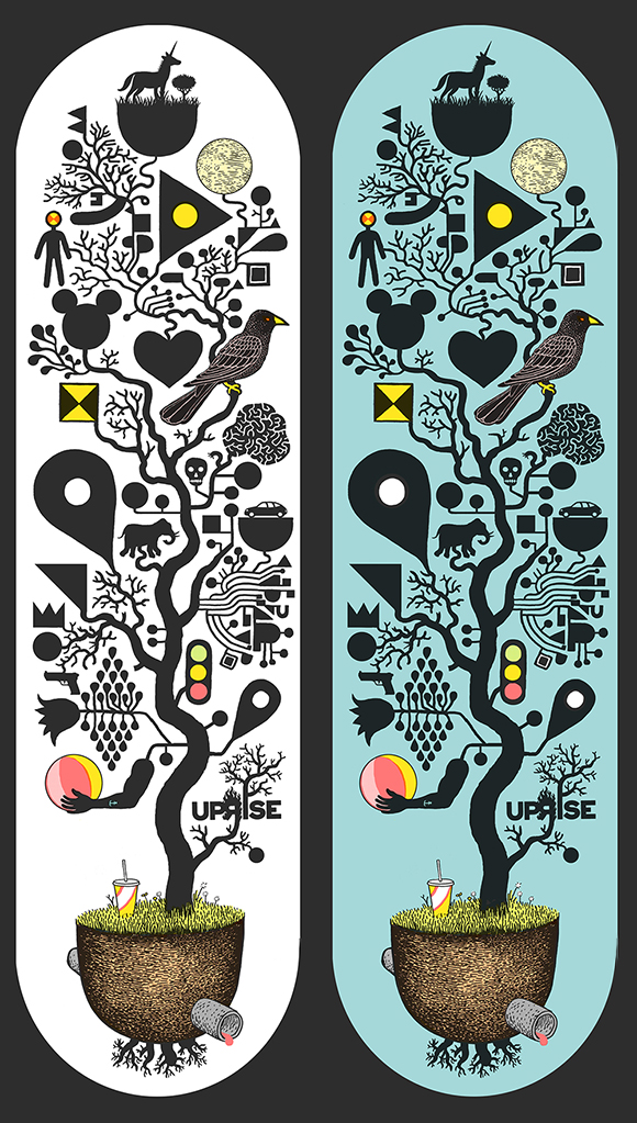 I just did a new board collab with Uprise, my old shop in Chicago. Stoked to work with those guys on this. They even let me mess with their logo on the back. You can order one at their site, then go learn slappies on the curb outside your house.