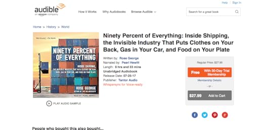 Here is a link to the Audible page for Ninety Percent of Everything, audio version. I’m not sure whether you have to sign in to Audible to see it, so here’s a screenshot.