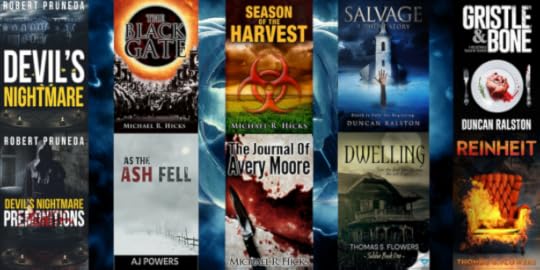 My favorite holiday of the year (Halloween, of course!) is fast approaching, which also means it’s time for another awesome giveaway for newsletter subscribers. This year I’ve partnered with four super-talented authors in the horror, science fiction, dystopian/post-apocalyptic, and thriller genres. In addition to my own work, I’m very excited to announce that Duncan Ralston, Thomas S. Flowers, AJ Powers, and Michael R. Hicks have graciously donated signed and e-book copies of some of their books for prizes. The only catch is that you sign up for our newsletters (current subscribers to my newsletter can also enter for a chance to win), but don’t worry, we don’t bombard our readers with a bunch of spam. Scroll down the page for more information.