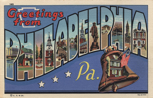 This year, I'm more or less staying put here in Philadelphia (working on the next novel), but that doesn't mean I can't send you a thin slice of postal thanks. So if you pre-order P&S at any time, right up to the pub date (April 30), I'll send you a personalized postcard, thanking you. The postcards will be as cheesy and tasteless and weird as can be. If you pre-ordered two years ago, you know what I mean. And my handwriting kind of sucks, but that's part of the charm. (Right?)