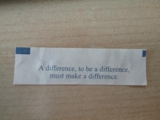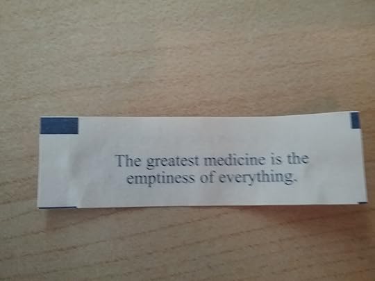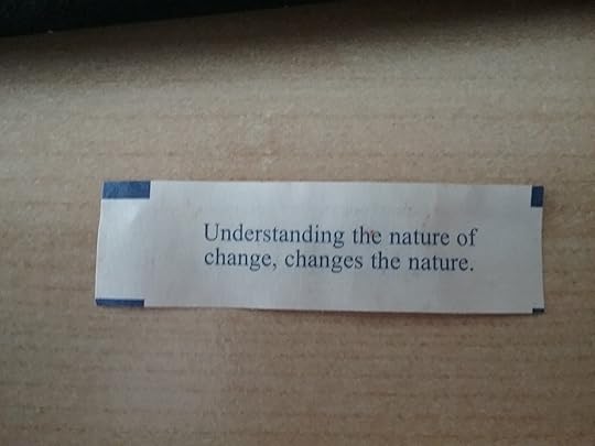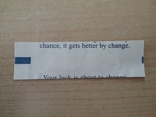 If Werner Heisenbergwrote fortune cookies and was messy with the garlic sauce this would be what he produced. I guess the uncertainly principle applies to cookies. I can never truly measure change, not that I was trying to measure change. I was simply trying to change my state of hunger without cooking.