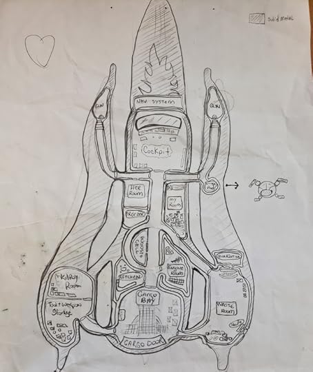 Sketching out the ship helped visualize the locations, and how the characters got from here to there.Today I realized her ship is basically a flying Fender guitar with sweet flair.