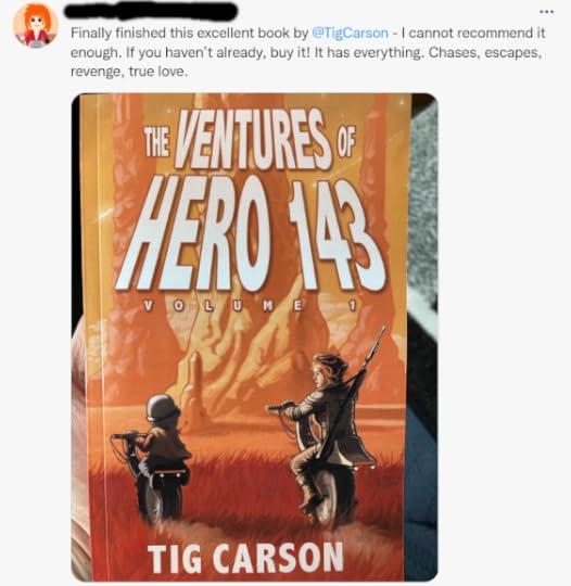 You can buy the book HERE:The Ventures of Hero 143 (Vol I): Carson, Tig: 9781724616838: Amazon.com: Books