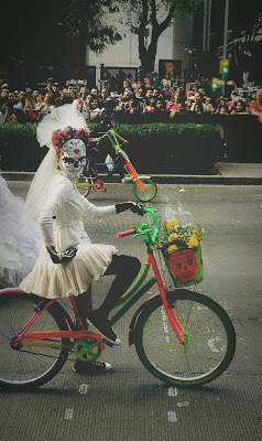 Estoy parado al borde de la calle en el desfile de las calaverasLas personas gritan eufóricas apretándose unas a otras para verLa burla a la muerteUn grupo de jóvenes baila con máscaras Las máscaras están hechas de coloresTomo fotografías con mi celularLas envío a alguien en otro paísMira cómo es México, escriboMis pies se sienten cansadosUn grupo de calaveras con vestidos temáticos de la revoluciónPasan cantandoCanta y no llores, dicen.En mi pecho se enciende algoMi rostro muda su alegr...