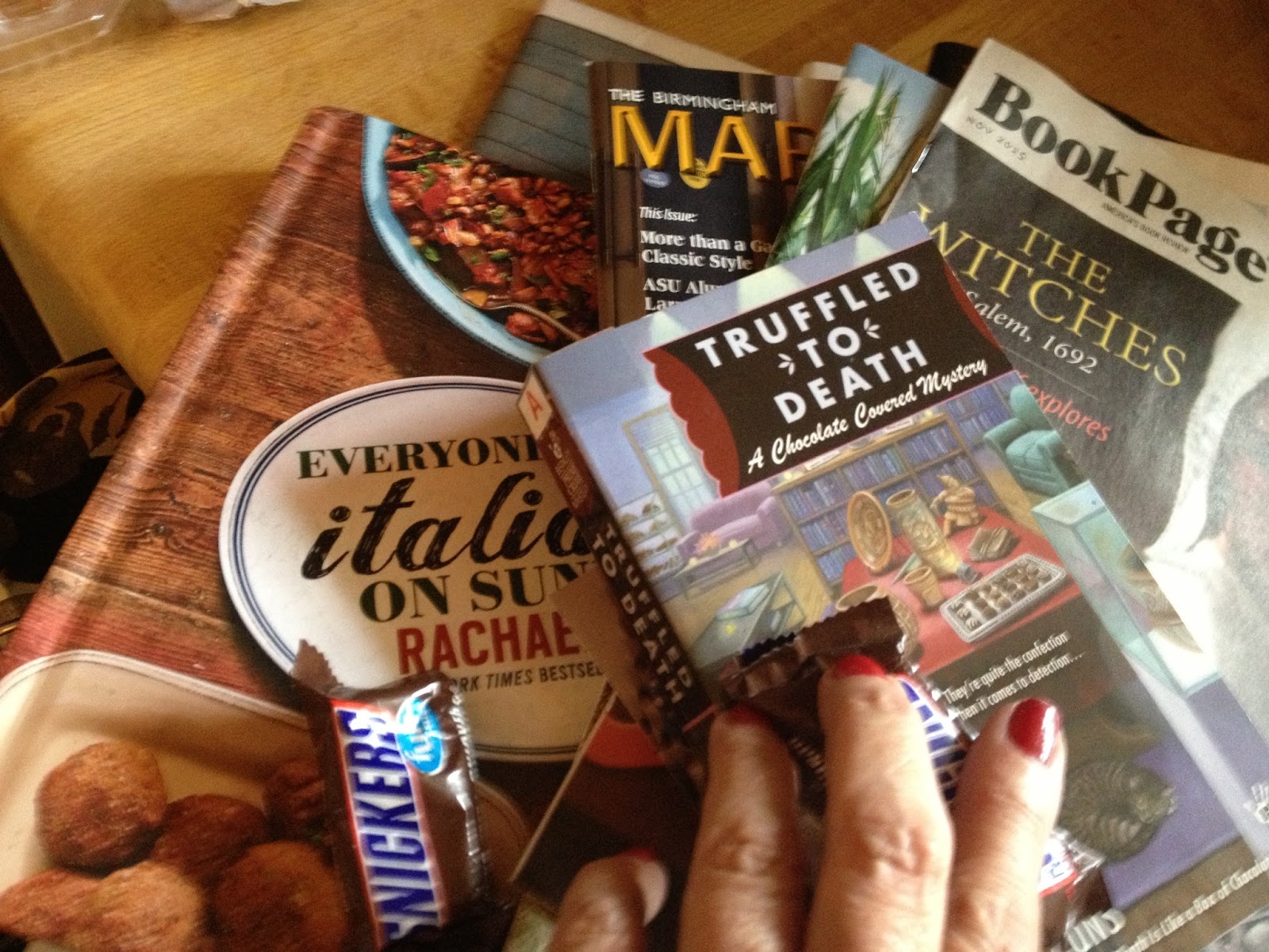 PepperPlace Farmers market (goat cheese and Kale); Western Market (last 2marked down pkgs of drumsticks); corner of 11th n 19th on Southside/ checked PO Box (bills, party invites - no checks - sigh), scored a cozy mystery i series I'm reading, Rachel Rays new cookbook and 2 mini snickers from trick or treat bowl, returned one overdue book and paid fine across street at library, picked up mint at Golden Temple on other corner to go w parsley n mint from my potted garden for tonight's tabouli salad to go w leftover kibbee dinner(courtesy of mom); Kangaroo and CVS for weekend's cheap beer n wine.