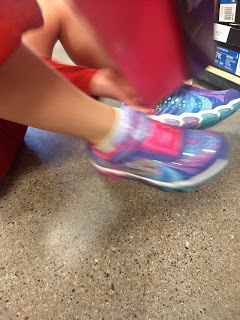 I'd told him that he could look for light-up sneakers and he wanted them to be velcro so he wouldn't have to tie his shoes. It had not occurred to me that he might pick out "girl" shoes.