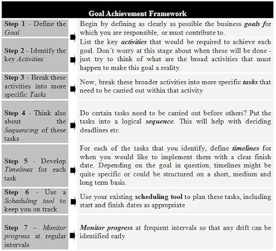It is a straightforward model but captures best practices and addresses important issues such as avoiding short-termism, lack of follow through, lack of ownership of targets etc. In greater detail the planning framework has the following components:
