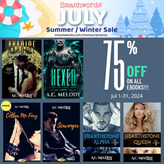 It’s the annual Summer/Winter sale at Smashwords, and I’ve decided to go all-in this year. Every one of my books will be 75% off starting tomorrow (July 1st) and lasting all month long. Collar Me Foxy is already perma-free, so that will also be included under the free section!