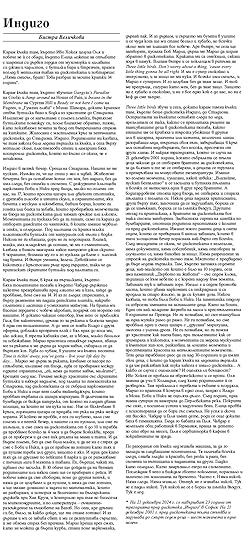 Снимка: в. „24 часа“Индиго в петък вечер. Среща на Стадиона. Наще не ме пускат. Излъжи ги, че ще спиш у нас и идвай. Живеехме вечерта без да оставяме копие от нея, без индиго, без да има следа, без снимки и спомени. С дежурните кльощави наркомани Боби и Ники пред входа, малко по-големи от нас, на 17, които просеха за цигари или двайсет стотинки, с дрезгави гласове и впити скули, и охранителите, яки бичета с мускули и шкембета, бивши борци, които ги гонеха или биеха за забава, които проверяваха момчетата на входа на дискотеката, дали нямат оръжие или алкохол. Момичетата ги пускаха без да ги пипат, само ги караха да отворят дамските си чантички, в които имаше червило и сенки, и огледалце. Под палтата си криеха малки пластмасови бутилки от натурален сок пълни с водка. Никога не ги хващаха, дори не ги подозираха. Влизай мацка, ама младежът да остане, че ми е съмнителен, казваха и винаги намираха някое патронче джин скрито в чорапите, взимаха му го и го пускаха да влезе с плесник зад врата. И вътре умната, келеш. Девойките се кикотеха, с кръстосани ръце пред гърдите, така че да притискат скритите бутилки под палтата си.