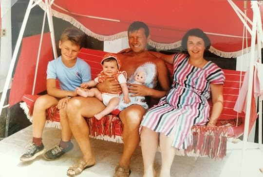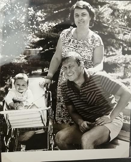 През лятото на 1987 г., на шестмесечна възраст, Бистра с родителитеси в двора на семейната вила. Снимка: Личен архив