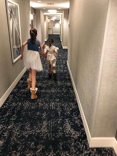 We don’t stay in hotels often, but we knew with some cheer travel that we’d have to, and they love it. I don’t know why I got so teary-eyed, but watching them run down the hall, my youngest with two baby dolls in tow, made me wish they’d stay young forever. Oh, and I’m sorry to the other guest for all the noise, noise, noise (I can’t let go of Christmas!)
