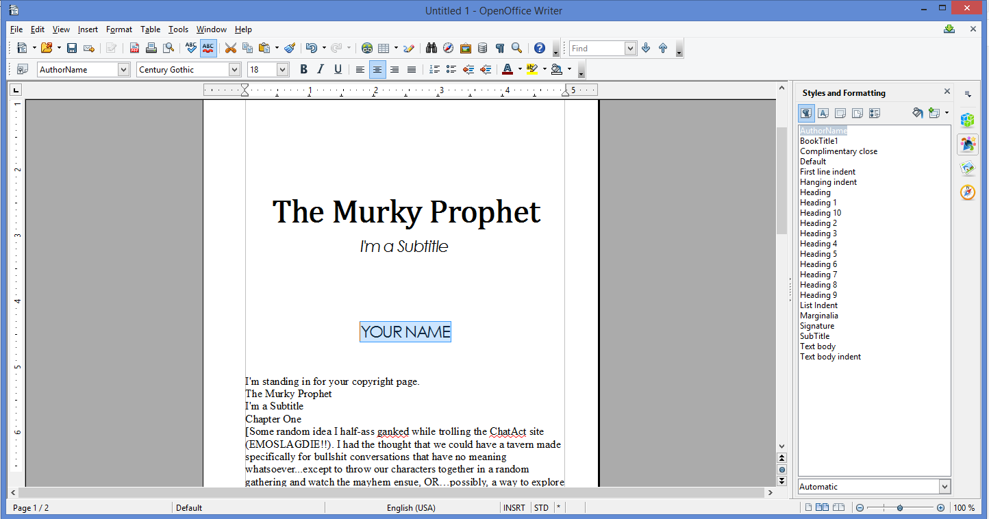 First off, if you're using Microsoft Word for your book... Oh, you sweet, summer child. I will send sacrifices to Odin in your name. Hopefully this blog will stave off some of the frustrations I've dealt with in the past two months. If you haven't started formatting, DON'T. Just go get OpenOffice from Apache right meow.