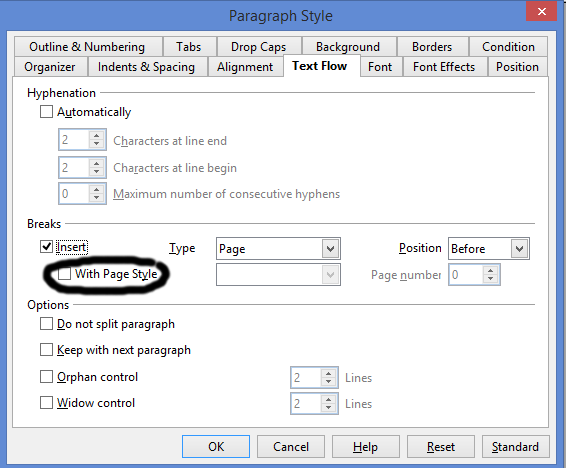 HUZZAH! Now we're getting somewhere. Okay, now we've got to create a page break for the copyright page. We don't want that on the same page as our title. SO, go over to "Text Body." Right click and select "New." Repeat the previous steps, but on the "Text Flow" tab, you need to get into the "Breaks" area.