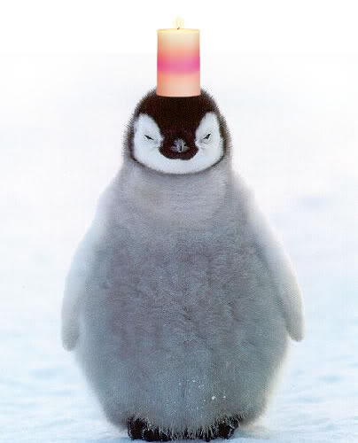I'm still working on my next book, but it's going very, very slowly. So to make up for my slowness, here is a baby penguin with a candle on his head.