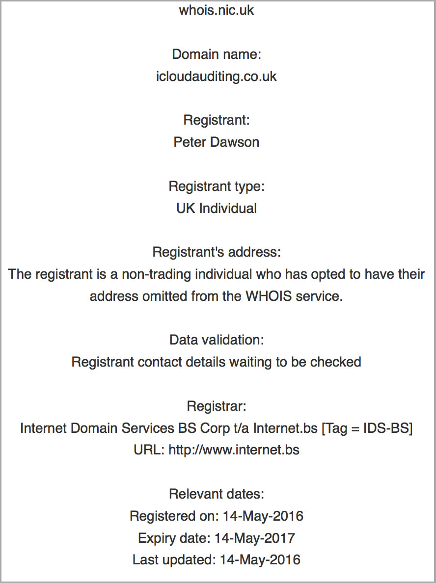 I used easily.co.uk to see what I could see about who had registered the domain icloudauditing.co.uk... and when. This is what I found...