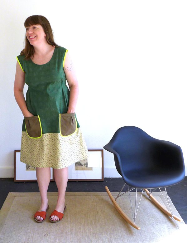 In the end, I love this dress. I'm thinking of this as a wearable muslin since I didn't make a real muslin, but it's very wearable indeed. Changes I will make next time in addition to making the small and shortening the length a little bit more will be to just reshape the sleeves to be a proper tank, and raising the back a bit too as the scoop is a little too low for me. But this is just personal taste and nothing about the pattern at all. Next version I will try it without the pockets and in a less grannie fabric, as I can see this being a really great staple for hot summer days, or with a cardigan in the fall and winter, and made up in solid black or navy could be very chic and classic.
