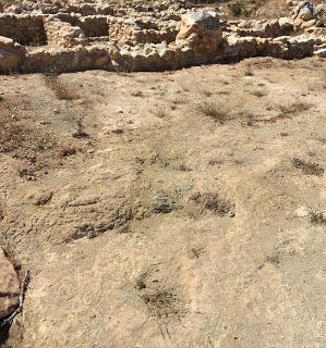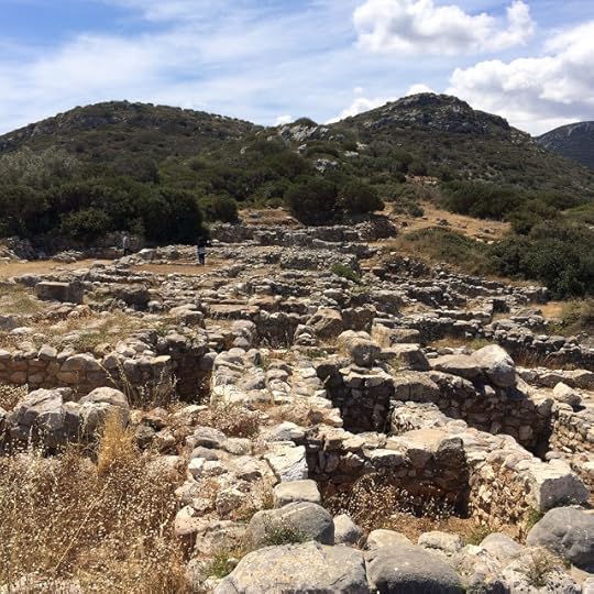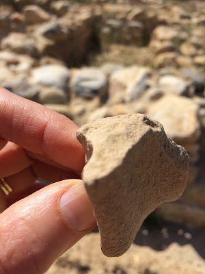 I’ve just spent a day with the archaeologist Sabine Beckmann in Gournia, Crete. I've found and held sherds of pottery that are more than 4000 years old, held a stone tool that a potter probably used, and stood on the clay floor that she would have sat on to work. The rest of the town is rock, but the potters' work field is clay, from the years of clay spilled as the potters worked. Somehow, that makes it more real than if an entire ornate pot was sitting in the middle of it.