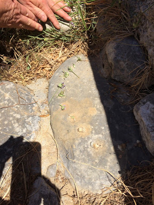 Archaeologist suggesting how offerings might have been arranged in the depressions in this stoneIt’s humbling. And inspiring. My head is buzzing, and the new story is simmering...