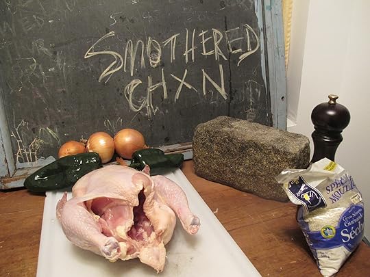 It's been going around town that a brick is no longer necessary if you intend to smother a chicken. Now, I'm a big fan of The Broke and Chic Project, but even colleagues who share a deep respect for one another have to disagree occasionally. Most any kind of orthodoxy makes me itch. I don't believe this because fathers and mothers of the tradition say you must (here, thinking Prudhomme and Claiborne) you can't smother a chicken (or pork chops, for that matter) without pressing the meat to the bottom of the skillet thereby maximizing thermal contact.