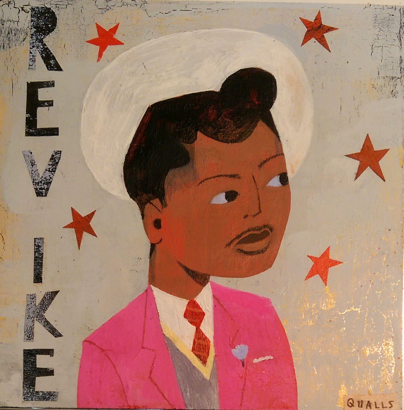 Reverend Ike was a minister my mom listened to and watched on television in the 1970's. Recently, I found a link to one of his interviews on youtube. I was instantly brought back to my childhood and my mother's $ contributions to his ministry watching this flamboyant televangelist. Ever since hearing about the minister Jim Jones when I was a kid, I've been fascinated by extreme religious personalities and their lives. I'm sure Reverend Ike is only one of many off-beat religious characters that I will paint. This one is 6x6", ( a little larger than a cd case but slightly smaller than a 45rpm record) mixed media (acrylic paint, pencil) and collage on 1/8" hardboard.#reverend ike, #rev ike, #Frederick Eikerenkoetter, #preacher, #seanQualls, #dailypainting, #mydailypainting,