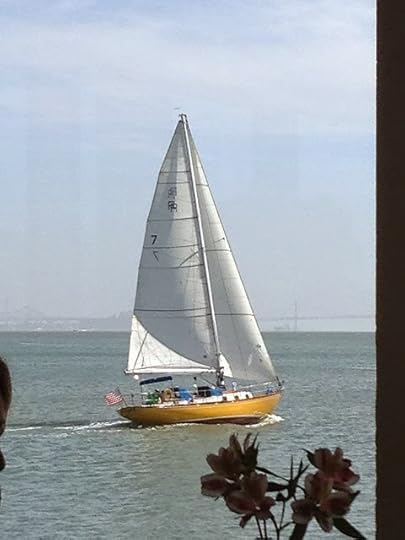 The hubby looks like a ant next to the tree. :-) It was truly a special trip through the forest and we needed more time, but our tour bus driver almost left us. Gah. Then he dropped us off in the small town of Sausalito. We ate at the Spinnaker for lunch which was nice, but probably geared for the older crowd or maybe it just seemed that way that day. But the view of the water and boats, and the food were really good. We then took a ferry back to San Francisco, but along the way the ferry made stops at all the islands, and we enjoyed the relaxing ride.
