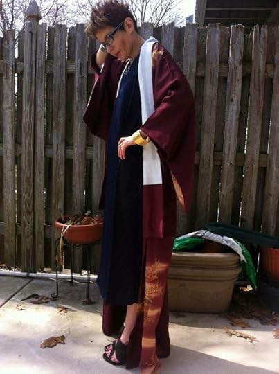 Of course it's still a bit chilly so I'm wearing a vintage Japanese kimono. Cuff was a gift from a friend.