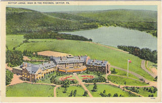 To get to 1928 from my house, I discover, all I have to do is drive two and a half hours west-southwest. After turning in at the driveway of the Skytop Lodge, from a deeply shaded road through the lonely forests of Pennsylvania’s Pocono Mountains, nearly a century drops away while attaining the final hundred feet of altitude on the climb to the mountaintop hotel. And there you are, in the heady days of the Jazz Age, when vast hotels were rising all over America as precipitously as stocks.