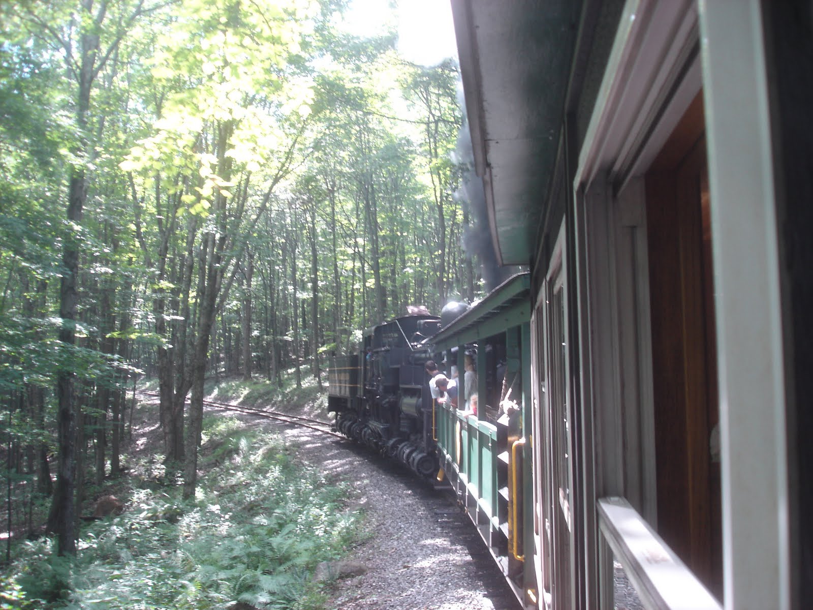Where IS this place? The four-lane became a two-lane. The two-lane became a twisting, winding, narrow monster that climbed and crashed like a roller coaster. Mapquest had been accurate in its 1-1/2 hour time estimate of the trip from Elkins to Cass, but what it didn't tell me was how much really hard driving I would encounter. Finally a valley opened up at the end of a small village of white-painted houses and other buildings to reveal a train station and a cluster of white-painted industrial buildings. The paved parking lot was wide and not crowded at all, affording me convenient parking. Welcome to Cass Scenic Railroad State Park. Fortunately the 'will call' line for pre-paid tickets was much shorter that the 'Buy Tickets Here' line where adults couldn't seem to understand phrases like, "We cannot accept personal checks" and, "Children over 12 pay adult fares". We pitied the poor ticket clerk who had to answer a stupid question with, "We cannot tell you where to put your dog, but it cannot go on the train." I got the impression that for some people, the train to common sense stopped long before it reached their station.
